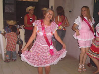 A festa foi sensacional. A maioria estava em traje caipira. As brincadeiras foram divertidas, todos ganharam muitos brindes. As crianças correndo com milho na colher foi impagável. O desfile das miss e místeres também foi muito divertido, principalmente com o efeito especial da Carol, que soltou estalinhos e assustou todo mundo, ela riu tanto do meu susto, que nem conseguiu mais desfilar. As comidas estavam 10. O tacacá deu um toque especial à festa. A Glória, amiga da Deise, foi incansávelo dia todo.